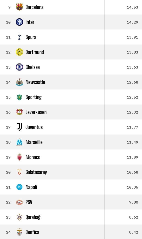 而国米、巴萨、热刺、多特、切尔西、纽卡、尤文等多支强队将齐聚附加赛区,9-24名的16支球队将争夺另外8个晋级名额。